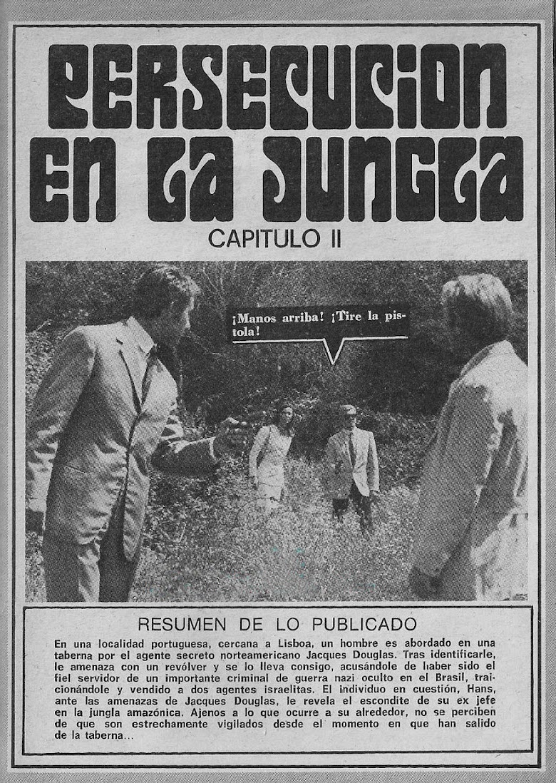 Recuerdo que el Teleprograma contaba en sus páginas finales con una especie de fotonovela (género habitual en aquellos años, de origen o producción generalmente italiana) que tenía temáticas de lo más variado (aventuras, terror, suspense). Recuerdo algunas como «Persecución en la Jungla» (cuya portada del segundo episodio adjunto a la derecha), «La rosa negra», «Un grito en la noche», «El monstruo de Londres» o «El monstruo de Saint Michel» donde la protagonista se llamaba Karin y ya desde el principio la historia comenzaba con un crimen, perpetrado con una especie de moho -así lo llamaban- que se arrojaba a la víctima y que se extendía rápidamente por todo el cuerpo, con un efecto aterrador, «Diamantes en el Sahara», persecución de nazis, plantas carnívoras, druidas, pájaros asesinos teledirigidos, alguna del oeste, etc. Al principio el Teleprograma costaba tres pesetas, luego un duro y cuando ya lo dejamos de comprar allá por 1979 o 1980 costaba 15 pesetas. Como decía en la anterior entrada sobre la televisión, esta era una de nuestras escasas vías de escape o evasión. Eran tiempos en los que las películas y otros programas de la televisión tenían los conocidos rombos, y nuestro interés por esos programas, tenía ocho o nueve años, era inversamente proporcional a su clasificación siendo los espacios calificados con dos rombos los más interesantes: la mayoría de las pelis clásicas o de género (cine negro, terror, etc) de la noche así como la mayoría de las series también nocturnas estaban clasificadas. Cuantas películas y series habremos visto escondidos, agazapados en la oscuridad de la cocina ante la terminante prohibición familiar. Los dos rombos se empezaron a utilizar en 1962 y desaparecieron en 1985. Se supone que las emisiones con un rombo eran aptas para mayores de 14 años y las de dos rombos para mayores de 18. Nunca supimos, a ciencia cierta, el criterio que seguían los presuntos calificadores.