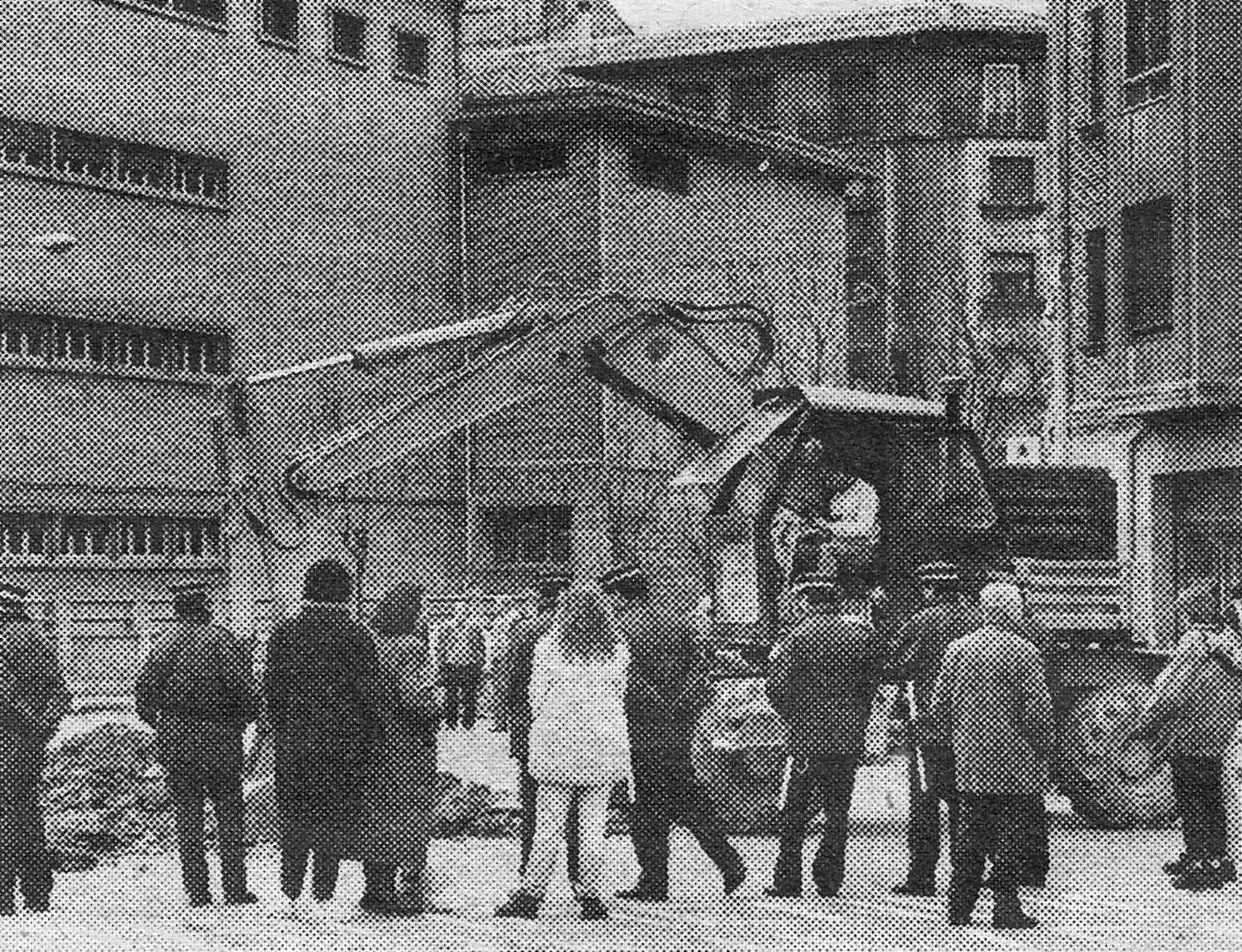 El 27 de enero se reinaugura el Museo de Navarra, tras una inversión de más de 500 millones de pts y una obra que duro varios años. El 8 de febrero de 1990 se acordó derribar el edificio que hacía esquina entre Navarrería y Mañueta y que vemos en la fotografía adjunta. El presupuesto municipal de 1990 ascendía a 10.758 millones de pesetas. El 28 de febrero se cerraba la Casa de Socorro, ubicada, desde 1971, en el Edificio de Autobuses, en la calle Tudela, tras más de 65 años de servicio a los pamploneses. En Mayo el local se cedería a Cruz Roja que lo utilizará para algunos servicios como el centro atención a intoxicaciones etílicas. La Casa de Socorro se había inaugurado  el 11 de noviembre de 1924 y en 1930 se trasladó a la calle Alhóndiga, donde permaneció durante 41 años. Hace unos días se anunciaba, en prensa, que el solar de la antigua Casa de Socorro de la calle Alhóndiga, que vemos en la foto adjunta, salía a subasta. Se aprobaba la construcción de un parque de 23.000 m2 en el solar de la antigua fabrica José Vila en La Milagrosa. El 18 de marzo morían dos chicas jóvenes, de 17 y 18 años, asfixiadas por inhalación de humo en el incendio del Burdindoki de la Chantrea, local municipal clausurado oficialmente dos años antes y «okupado» poco después. El Gobierno se comprometía a financiar los dos puentes que se construirán en la Rochapea. La nueva estación de Autobuses será según el anteproyecto presentado, semisubterránea. En septiembre se presentaba el proyecto, obra de los arquitectos Blasco, Tabuenca, Sagastume… que proponía recuperar el revellín de Santa Lucía, para verlo a través de una cristalera. La estación  era  totalmente subterranea.  La Meca se mostraba preocupada porque perdería los ingresos del parking en superficie y de las barracas. Se ampliaba el campus de la UPNA. Continuaron los problemas con los vecinos de la plaza Blanca de Navarra, a propósito de la construcción del parking. Se realizaron nuevas permutas de terrenos entre solares de Pio XII y Rochapea así como multitud de proyectos de parkings vecinales en Iturrama y San Juan. A mediados de abril de 1990 comenzaron las obras en la avenida de San Jorge, entre la Variante oeste y Cuatro Vientos. Se ampliaron calzadas, construyeron aceras y se derribaron algunos edificios. El 14 de abril fallecía el guitarrista flamenco Sabicas en Nueva York. La COTUP pedía una subvención de 120 millones al Ayuntamiento. Este le exigía la renovación de los autobuses más viejos, la reforma de algunas líneas y la señalización de las paradas.