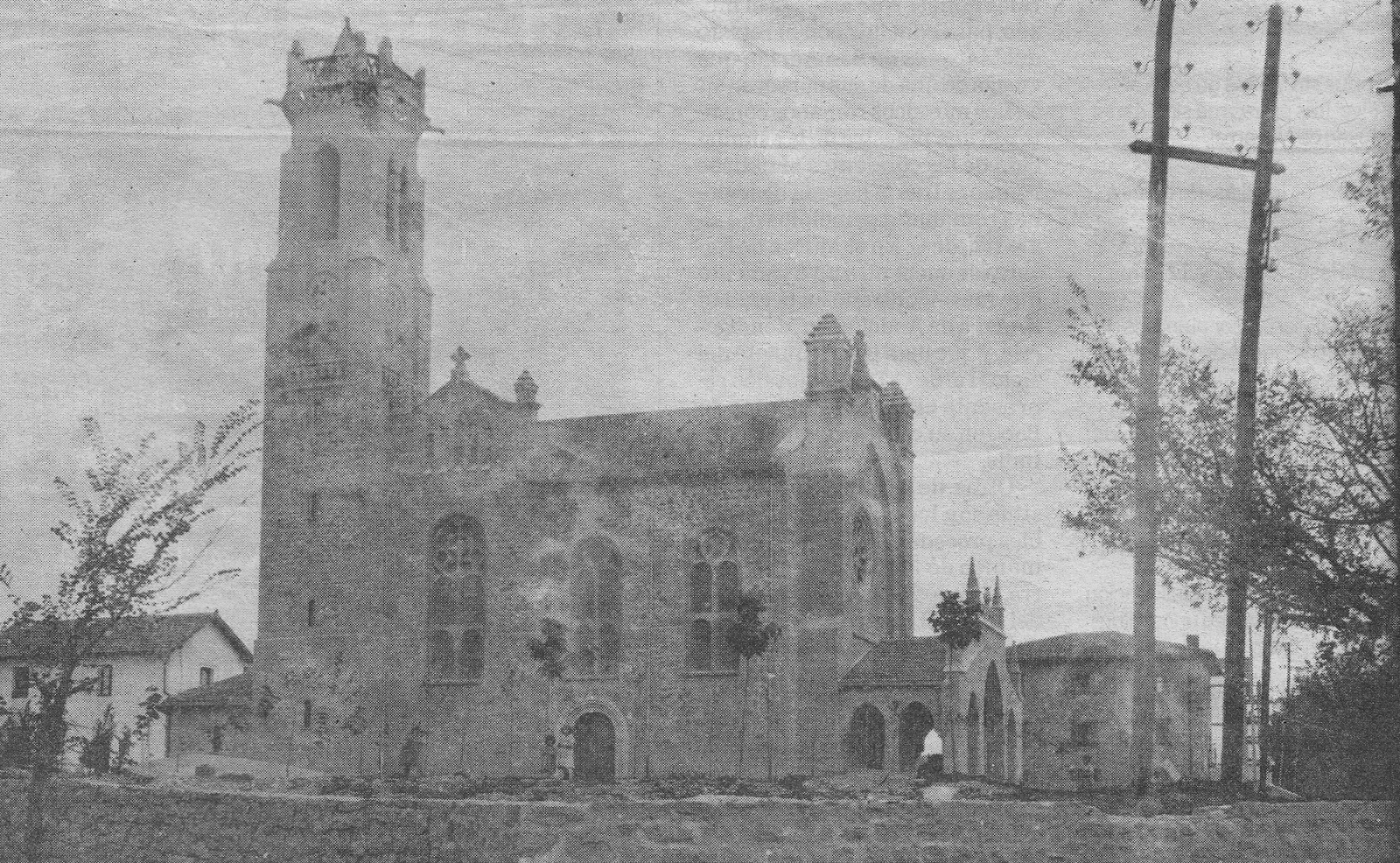Las ortofotos de 1929 que he consultado y unas pocas fotografías de 1916 y los años 20 nos permiten reconstruir como era la avenida de Marcelo Celayeta entonces. En los años 20, además de la iglesia del Salvador y de las cercanas escuelas del Ave María podíamos contemplar un nucleo de casas en el cruce de Cuatro Vientos, junto a él, la vieja calle de las Provincias, la calleja de casas junto a las escuelas del Ave María, enfrente, al otro lado de la avenida, algunas viejas construcciones de una sola planta, y algunos caserones sueltos tanto a un lado como a otro de la avenida ( casa de la Marichu, las Bodegas de Pacharan Baines, etc), luego las casas de la carbonilla, la vaquería de Larrayoz. En tiempos, la carretera estaba flanqueada por grandes arboles que irían desapareciendo a medida que el camino se convertía en avenida y se fue urbanizando con nuevas construcciones. Las fotos que encabezan la entrada muestran la iglesia del Salvador recien contruida (la foto de la izquierda, es de Aquilino Garcia Dean, data de 1916 y se conserva en el Archivo Municipal de Pamplona), con una calle, la carretera a Villava, semiescondida entre arboles y postes de luz. Esa casa de piedra, que se observa un poco más adelante de la iglesia, se derribó a finales del siglo XX, tal vez un poco antes de la ola de derribos de 1996. La siguiente foto, de los años 20, que reproduje en la página de Facebook está tomada desde la torre de la iglesia y permite atisbar una inusual perspectiva de la carretera a Villava, el Paseo de los Enamorados y la calle Joaquín Beunza.