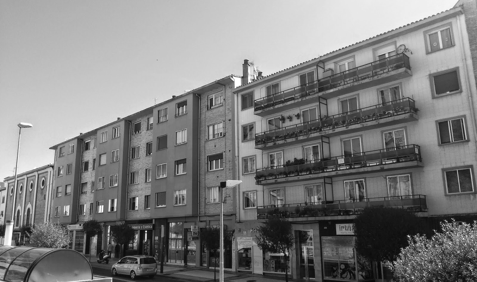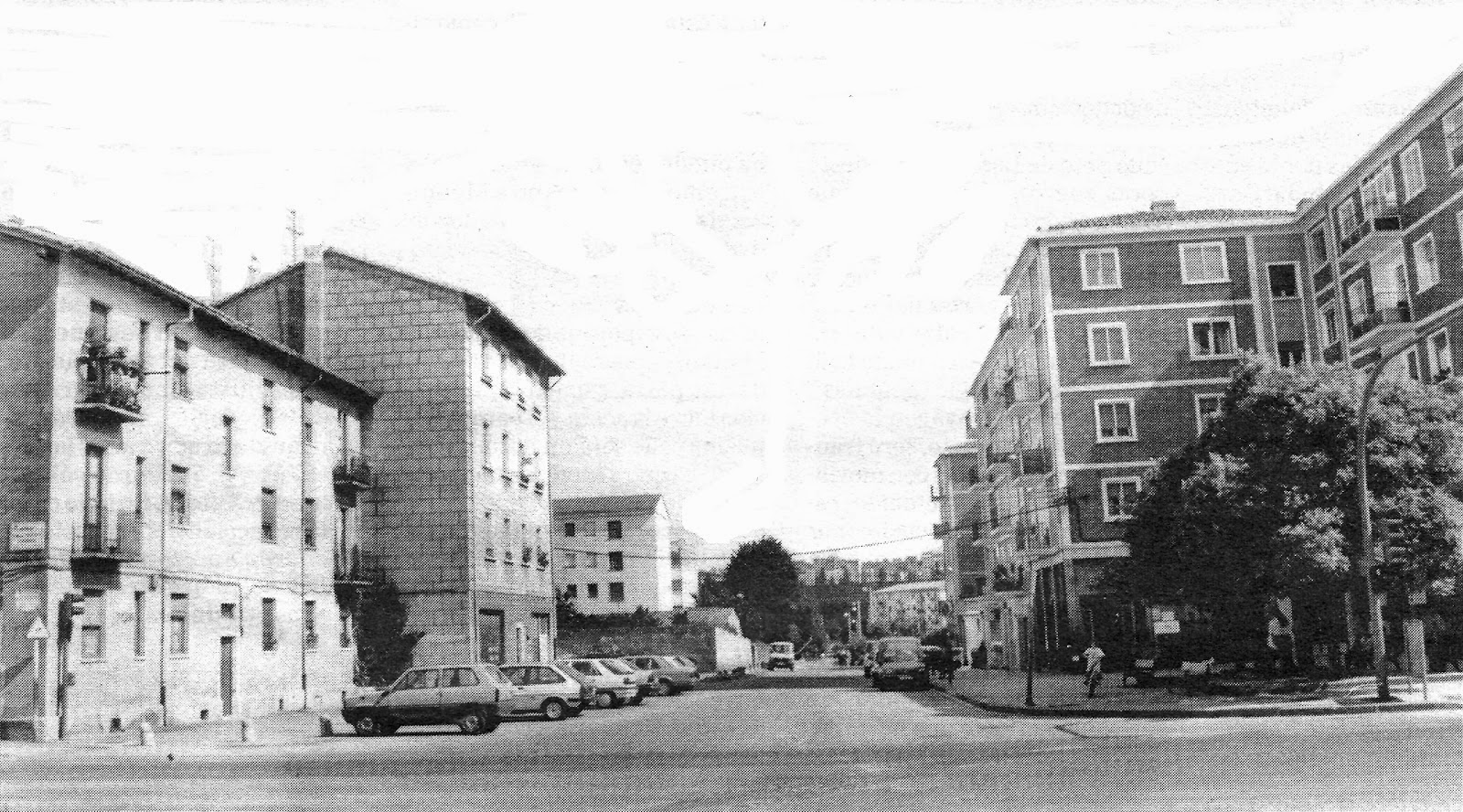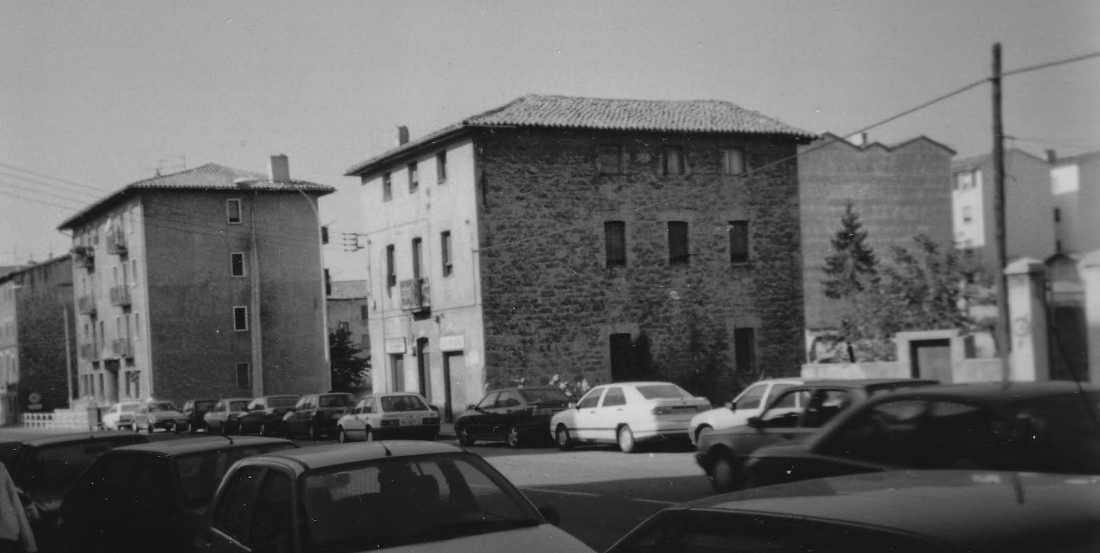 En la zona del Porrón estaban, desde los años 30, las escuelas y el barrio de la Carbonilla, y un poco más adelante la vaquería de Larrayoz. Luego algunas casas unifamiliares dispersas, algún viejo bloque de viviendas y naves con talleres, aproximadamente desde los años 50. Sería a finales de esta década y principios de los años 60 cuando el barrio empezó a dejar de ser un nucleo eminentemente rural, con una población y edificación dispersa a convertirse en el abigarrado barrio obrero-industrial que conocimos los que nacimos en el lugar. Matesa se construyó a finales de los 50, el nuevo colegio del Cardenal Ilundain lo hizo en 1964, fruto del desarrollo del barrio aquellos años, La mayor parte de los edificios de la Avenida Marcelo Celayeta se construyeron, insisto, a finales de los 50 y primeros años 60. A finales de los 60 y primeros 70 se derribarían algunas de aquellas viejas construcciones más cercanas al tramo de Cuatro Vientos (que vemos en la fotografía adjunta de Arazuri, de 1967, cómparese con la foto moderna adjunta en donde solo se mantiene, como única referencia, la nave de la iglesia de la clínica de las Hermanas Hospitalarias) y algunas, en otras, en diferentes tramos de la avenida (sobre todo en los años 70 y cerca del Cardenal Ilundain y de las casas del Bar Karpy) y en 1996 se produce la gran transformación de la avenida, desapareciendo buena parte de las construcciones más antiguas de aquellos primeros núcleos de la avenida de primeros de siglo, víctimas del progreso y la renovación urbanística y que vemos en las siguientes fotos (alguna foto de antes de los derribos, de los años 80 y primeros 90 (Casa Parroquial, cruce de Cuatro Vientos (foto de Manolo Hernández)) y otras de después, ya en pleno proceso de derribo y que ya han sido publicadas en diferentes entradas de este blog).