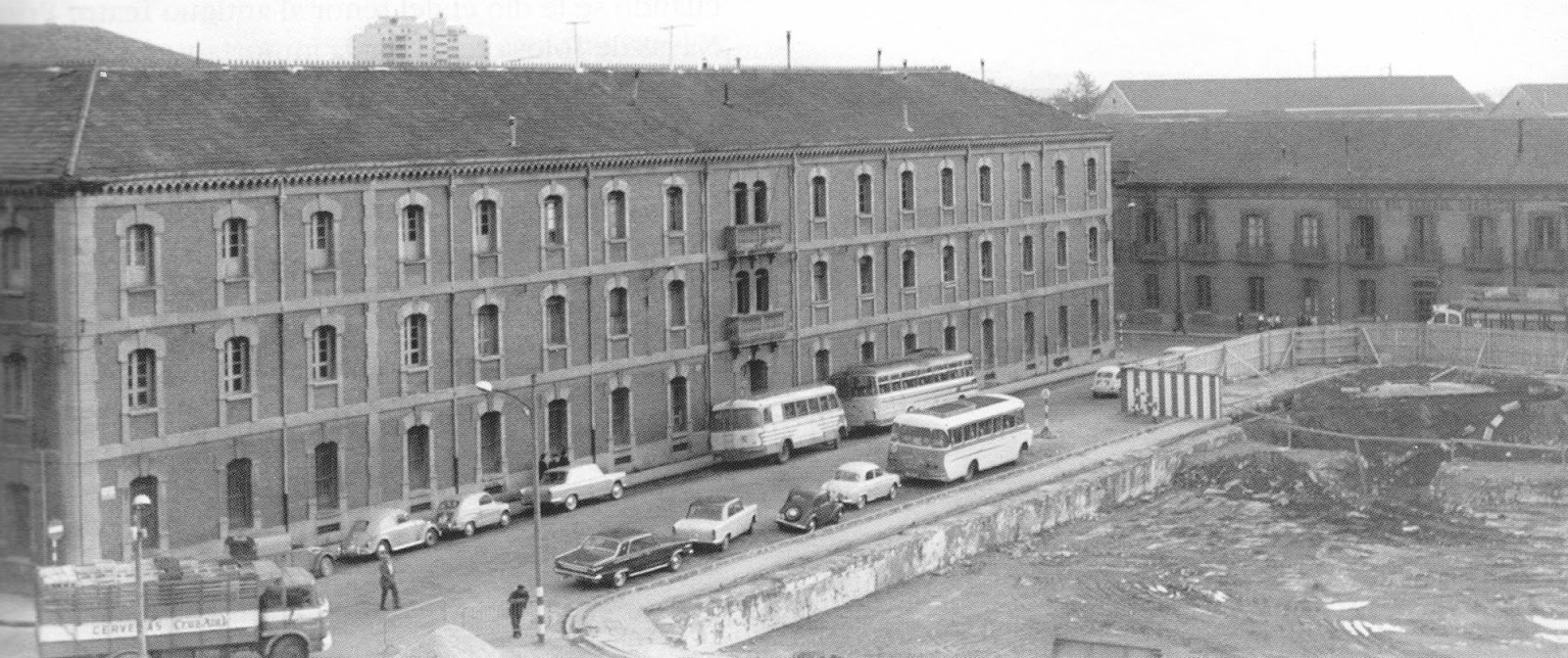 En 1965, se aprobaba el proyecto de obras del embalse de Eugui que daría respuesta a las crecientes necesidades de abastecimiento de agua en Pamplona. Su presupuesto global ascendía a unos 143 millones de las antiguas pesetas. El Estado contribuiría con el 50% del coste de las obras y el otro 50% de la factura iría a cargo del Ayuntamiento de Pamplona y la Diputación Foral. Se hablaba de instalar una pista de hielo en la plaza de toros, noticia de la que, al poco tiempo, nada más se supo. El 4 de marzo se produjo una insólita manifestación de universitarios en las inmediaciones del Gobierno Civil, en defensa de un verdadero sindicato estudiantil representativo, (el SEU, controlado por el régimen no se consideraba como tal), y en solidaridad con el movimiento de protesta universitaria de Madrid, donde habían sido expedientados conocidos catedráticos: Aranguren, Tierno Galvan, García Calvo. No hubo cargas ni detenciones. Se derribaba el caserón de la Alhóndiga y Tránsito Municipal que también albergaba la Escuela de Artes y Oficios y la Academia Municipal de Música siendo sustituidos por varios edificios de 7 u 8 plantas que daban a las calles Yanguas y Miranda, Estella y Vinculo. Para mayo de 1965 ya se habían producido cinco subastas de terrenos en el solar donde estaban los edificios derribados, la última subasta fue una de las más caras: 36.300 pts el m2. La foto que encabeza la entrada, de Vicente Galbete, muestra los solares despejados de escombros. (La foto está datada en abril de 1966). También desaparecía, este año, del centro de la plaza de la Argentina la farola ornamental que había estado desde 1958 en el lugar y antes frente al palacio de Diputación. Se eliminó este año la farola con el fin de convertir la plaza en una parada de autobuses o estación de autobuses urbanos al aire libre. En mayo de 1965, también, se inauguraba el nuevo altar y la residencia de los Padres Redentoristas en la calle Cortes de Navarra, que vemos al comienzo de la entrada.
