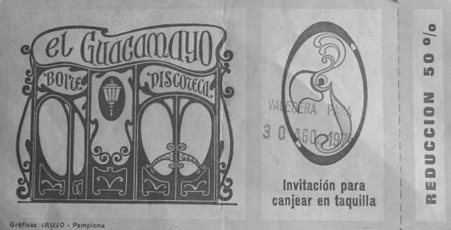En junio se inauguraba el Guacamayo (vemos junto a este párrafo una invitación de la sala de los años 70) y en julio se reinauguraba, -tras el incendio de noviembre de 1968-, el Teatro Gayarre. Este año se abría el cine Arrieta, antiguo cine Proyecciones y luego Novedades, en la calle San Agustín, que vemos en la fotografía de la derecha. Hacía pocos años, en el año 1963, que se había abierto en La Milagrosa el cine Guelbenzu y en el centro el cine parroquial Xabier, junto a la parroquia del mismo nombre (San Francisco Javier). Se instalaban los primeros semáforos aéreos y de poste junto al Hotel Tres Reyes. Recuerdo que había una caseta en San Fermines, en el Paseo de Sarasate, donde hoy existe una parada de villavesas, enfrente del actual Parlamento. El 31 de agosto se cerraba el frontón Euskal Jai, en la citada anteriormente calle San Agustín. En agosto de 1969 nacía realmente la COTUP. Sus empleados cambiaban de atuendo, de color caqui a gris y en 1970 instalaban sus garajes o cocheras en Ansoain. Se desalojaba este año el Monasterio Viejo de San Pedro, habitado por las Madres Agustinas o Petras que se marchaban a la zona de Aranzadi, muy cerca del colegio del Redín. Comenzaba la construcción del aeropuerto de Noain terminándose en 1972.