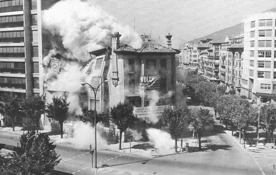Franco era ingresado afectado de flebitis, asumiendo temporalmente las funciones de jefe de estado el Príncipe de España. Es definitivamente abandonado el Palacio de Capitanía que hasta 1971 había albergado la Capitanía General, el Gobierno Militar. Tal y como hemos visto en otras entradas aumentaron los conflictos laborales y la agitación estudiantil, social y política en Pamplona, con asambleas en Magistratura, huelgas en las fábricas (Authi, Super Ser), reuniones en los institutos (especialmente Irubide), homilías  en las iglesias, etc. Se produjo un tiroteo cerca del cine Rex. Al día siguiente caía desde un tejado un joven en medio de una persecución policial. Se quemaba la factoría de Authi. El incendio se produjo en un momento delicado para la empresa. La fábrica tenía entonces 1.700 trabajadores. El Ayuntamiento compraba 28.000 m2 en el término de Aranzadi. La obra del puente de San Jorge está íntimamente relacionada con el desarrollo de la Variante Oeste, la primera de las avenidas de circunvalación que luego sería la avenida de Navarra, siendo desplazada posteriormente por variantes más periféricas. El 28 de agosto se iniciaban las obras de la Variante que se inauguraría el 30 de julio de 1978. Se construyó para desviar la circulación más densa de nuestras carreteras en dirección norte-sur a su paso por la ciudad.  En septiembre se derribaba la casa de las Hiedras, en la plaza del General Mola, hoy plaza de las Merindades, como vemos en la fotografía adjunta de Arazuri. Se inauguraba en Pamplona el centro territorial de la UNED. Se abría en septiembre la primera guardería de la Rocha, situada en la avenida de Marcelo Celayeta. La policía entraba en la Catedral y disolvía violentamente una asamblea de trabajadores lo que provocó las protestas de un buen número de parroquias de la ciudad. Y por último, a finales de 1974, comienzos de 1975, se ponía en funcionamiento el primer tanatorio de la ciudad:  el tanatorio Irache.Fotos referenciadas en el texto de la entrada.