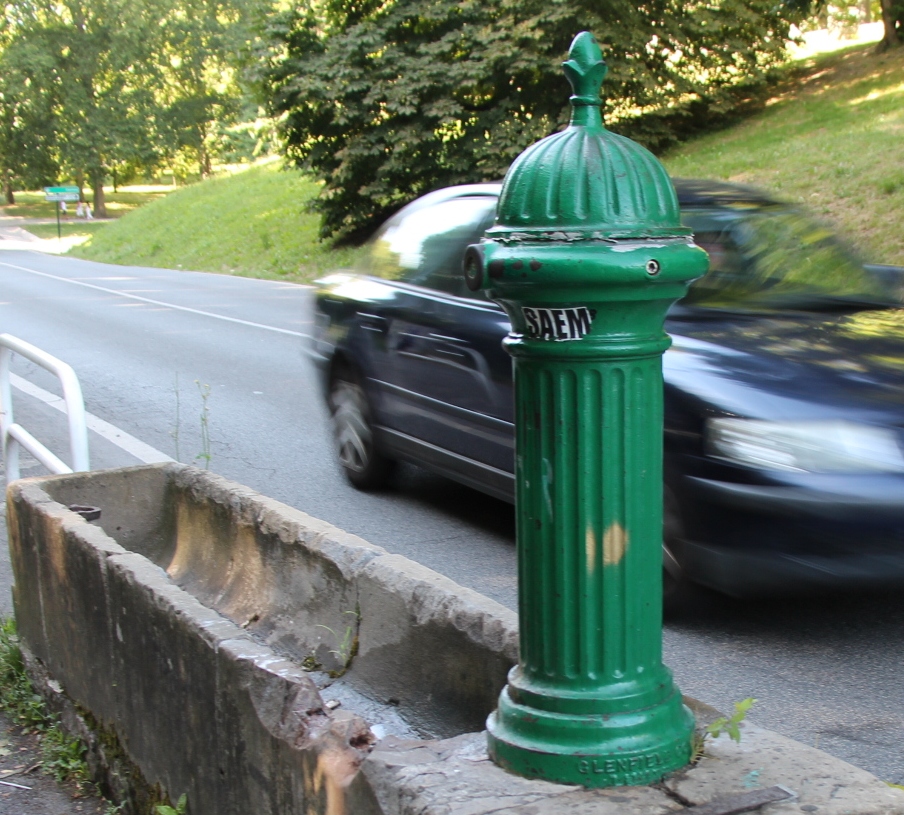 Poco a poco van desapareciendo de nuestro paisaje urbano, aunque todavía queden muchos rastros de ellos, si, los elementos del mobiliario urbano del viejo Pamplona. Sus formas y sus colores formaban parte de nuestras señas de identidad como ciudad. ¡Como no acordarnos de aquellas fuentes del león, de color verde y hierro fundido que aliviaban nuestra sed en parques como la Taconera o la Medialuna, como la que vemos en la fotografía de la derecha, situada en la calle del Vergel. Apretábamos el botón para aliviar nuestra sed después de corretear entre sendas y jardines y al poco rato el hilillo de agua menguaba y desaparecía. En el año 2009 había en la ciudad unas 180 fuentes del león fabricadas, desde hacía casi un siglo, por Casa Sancena, empresa fundada en 1848 y ubicada hasta el año 2004 en La Rochapea, concretamente en la calle Joaquín Beunza. A esta empresa se debieron buena parte de los elementos de mobiliario urbano de la ciudad, las más conocidas, las fuentes del león y menos algunas otras de tipo vasija, también la barandilla del león que cerraba calles y paseos, sobre todo en algunos miradores y en zonas cercanas al Río Arga (Mirador de la Taconera, Mirador de la Media Luna, Errotazar, Jardín de Eugui, etc.), barandillas de color verde con el león rampante, coronado por la corona ducal, pintado en plata en el centro, como la que vemos en la preciosa fotografía del estanque de la Media Luna; también de Sancena eran buena parte de las tapas de registro que veíamos en el suelo de nuestras calles y avenidas. Caso aparte fue la barandilla blanca del paseo de Hemingway, obra de la empresa fundición Luzuriaga de Pasajes, hace años desaparecida.