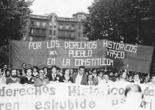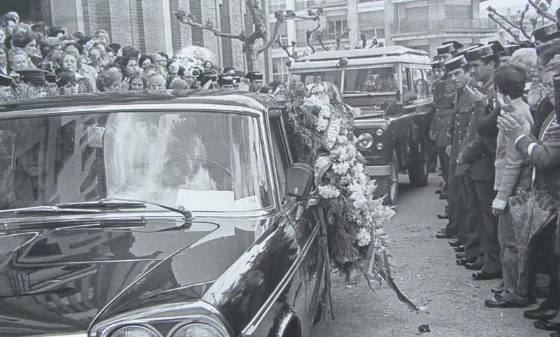 A partir de este año, las barracas de las fiesta se instalarían en Yanguas y Miranda. Las encerronas en el Ayuntamiento estaban a la orden del día. En Agosto llegaba hasta las campas de Arazuri, en las inmediaciones de Pamplona, la Marcha de la Libertad, de la que reproduzco, a la derecha de este párrafo, una fotografía. Comenzaban a hacerse presentes en las calles de Pamplona los Guerrilleros de Cristo Rey que protagonizaran numerosos altercados y agresiones indiscriminadas a jóvenes tanto en este como en años siguientes. El 5 de octubre la sede de la revista nacionalista Punto y Hora de Euskalherria, en la calle Cortes de Navarra, era objeto de un atentado reivindicado por la Triple A, que recoge una foto de esta entrada. El 27 de noviembre era asesinado por ETA en las inmediaciones de la plaza de Toros el comandante de la Policía Armada, José Joaquín Imaz, tras cuyo funeral se produjeron manifestaciones de la ultraderecha y enfrentamientos con grupos de jóvenes nacionalistas y de izquierda en el casco viejo pamplonés. (Se reproduce la foto de una manifestación de duelo y repulsa, al término de su funeral). El año acabaría políticamente con la celebración de dos manifestaciones de signo opuesto, el 3 de diciembre una convocada por la Diputación Foral presidida por su presidente Amadeo Marco con el apoyo de la UCD y AP, a favor de una «navarra foral y española» y el 9 de diciembre otra apoyada por 13 partidos y 6 sindicatos nacionalistas y de izquierdas a favor de una «Diputación democrática y un Consejo Foral representativo» que fue una de las mayores manifestaciones que habían tenido lugar en la ciudad según afirmaban esos días los periódicos locales y que también aparece en el encabezamiento de la entrada.