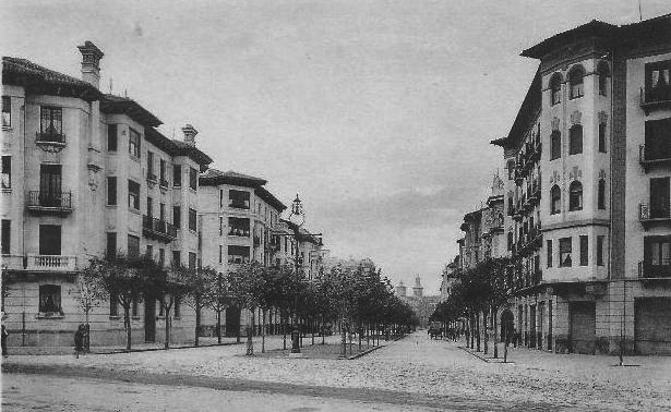 Continuo con esta serie, que intenta ofrecer algunas pinceladas de nuestras principales calles y plazas, al tiempo que vemos su evolución histórico-fotográfica. El Ayuntamiento dió este nombre en junio de 1923 a la vía principal del nuevo ensanche, para conmemorar el V centenario del Privilegio de la Unión, y lo hizo en honor al Rey que había logrado unificar los tres burgos medievales en una sola ciudad, Carlos III el Noble. Con kilómetro largo de distancia esta avenida se convierte en una de las vías más importantes de la ciudad. A lo largo de su trayectoria, desde la plaza del Castillo hasta la plaza de Conde de Rodezno, podemos descubrir, en sus inicios, el antiguo edificio del Crédito Navarro, hoy Banco de Santander, el Teatro Gayarre, el Palacio de la Diputación, el antiguo edificio de la Caja de Ahorros de Navarra, hoy Hacienda Foral, y en el segundo tramo la Iglesia de San Antonio y el Monumento a los Caídos, polémica construcción reconvertida en sala de exposiciones. Entre 1931 y 1932 se había derribado el Teatro Gayarre que cerraba la plaza del Castillo por ese lado, permitiendo abrir la plaza central de la ciudad a la naciente avenida. Vayamos por partes. Empecemos a repasar que es lo que nos encontramos en el lado derecho de la avenida de Carlos III.