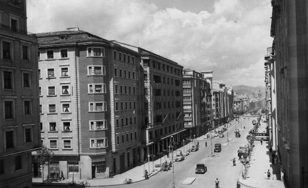 Continuo con esta serie, que intenta ofrecer algunas pinceladas de nuestras principales calles y plazas, al tiempo que vemos su evolución histórico-fotográfica. El Ayuntamiento dió este nombre en junio de 1923 a la vía principal del nuevo ensanche, para conmemorar el V centenario del Privilegio de la Unión, y lo hizo en honor al Rey que había logrado unificar los tres burgos medievales en una sola ciudad, Carlos III el Noble. Con kilómetro largo de distancia esta avenida se convierte en una de las vías más importantes de la ciudad. A lo largo de su trayectoria, desde la plaza del Castillo hasta la plaza de Conde de Rodezno,  podemos descubrir, en sus inicios, el antiguo edificio del Crédito Navarro, hoy Banco de Santander, el Teatro Gayarre, el Palacio de la Diputación, el antiguo edificio de la Caja de Ahorros de Navarra, hoy Hacienda Foral, y en el segundo tramo la Iglesia de San Antonio y el Monumento a los Caídos, polémica construcción reconvertida en sala de exposiciones. Entre 1931 y 1932 se había derribado el Teatro Gayarre que cerraba la plaza del Castillo por ese lado, permitiendo abrir la plaza central de la ciudad a la naciente avenida. Vayamos por partes.  Empecemos a repasar que es lo que nos encontramos en el lado derecho de la avenida de Carlos III.