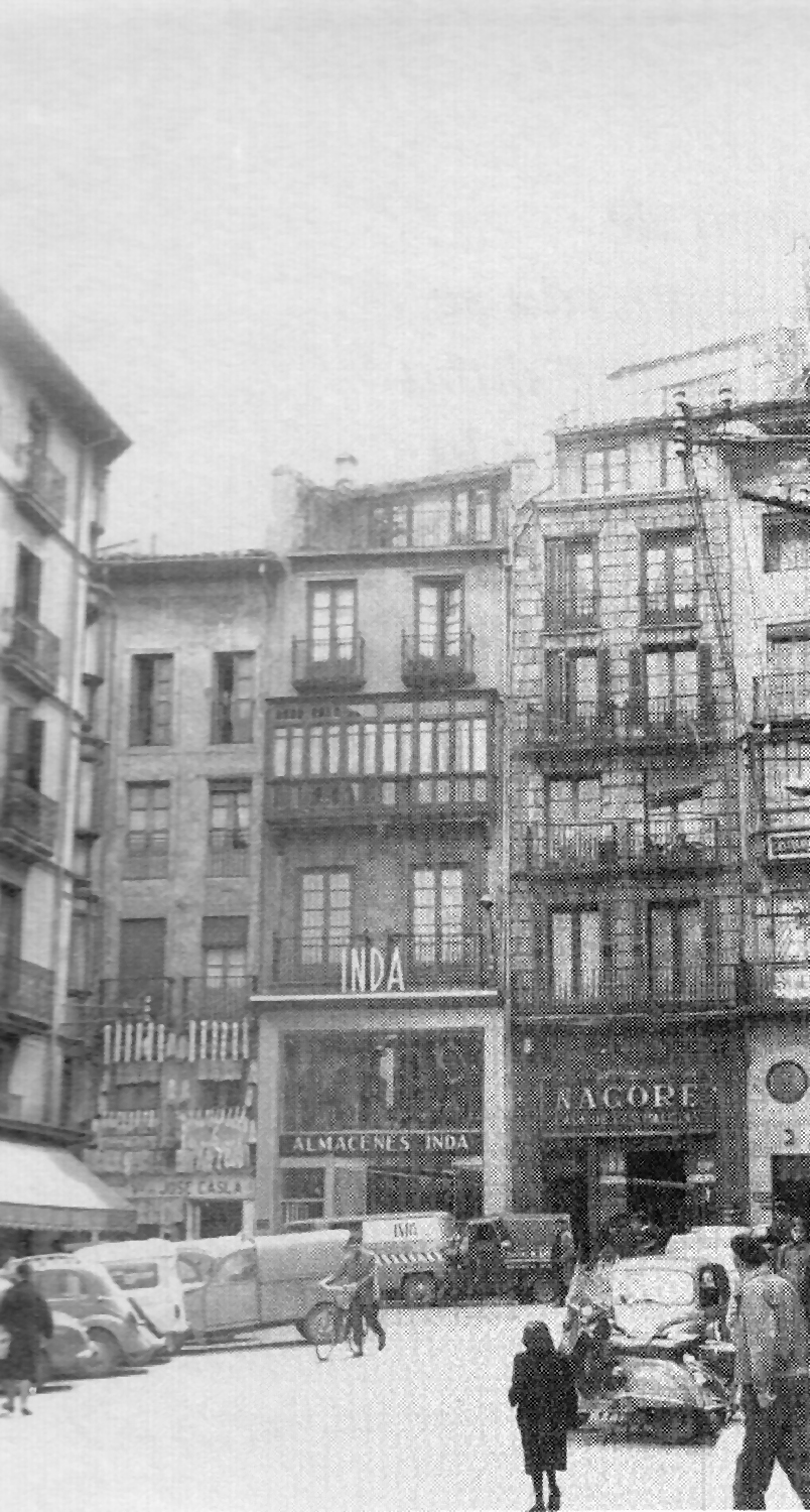 En la plaza consistorial, empezando por su lado izquierdo desde Calceteros estaban Joaquin Ciga con tejidos al por mayor y también al por menor y pañería y un poco más abajo herederos de Mariano Zufiaurre, con un género muy diverso: era una especie de bazar, con quincalla fina, objetos artísticos, loza de porcelana y cristal, etc. Tras Zufiaurre, en la esquina donde hoy esta el Cookie Shop pasaron a lo largo del tiempo el bazar de Enrique Cosyaga (que vemos en una foto postal líneas atrás), más tarde la juguetería de las hermanas Santamaría y la mercería de las hermanas Eguiguren, hasta llegar a la mercería de las hermanas Oronoz. La Plaza sufrió nuevos cambios en marzo de 1941 y abril de 1946 cuando se derribaron dos edificios, que vemos en las fotos del párrafo anterior del año 1933 para ampliar la entrada desde la calle Nueva. En el primero de ellos estaba Casa Iraizoz (la mercería de Iraizoz, primero de Vda de Iraizoz, luego de Ceferino Iraizoz que posteriormente se trasladaría al final de la calle Mercaderes, concretamente al nº 33) y junto a ella, un estanco, que vemos en la foto de 1933, de Hija de Elizagaray. Y más adelante la llamada Casa Seminario donde estaba la tienda de Hijos de Seminario (de Viuda de Seminario y Sucesores de hijos de Vda. de Seminario, entrada por San Saturnino) que vendía chocolate, azucares y cera, al igual que como hemos visto hacían otros establecimientos similares de la época.
