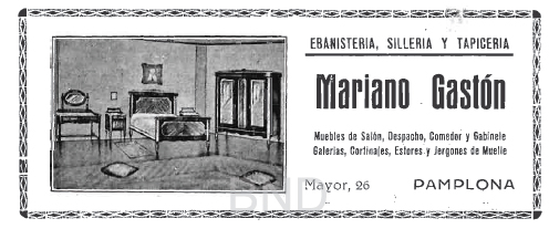 Luego venía la tienda de Ramón Unzu Got, Sucesores de Ramón Cia, bueno eso en los años 20, porque a principios de siglo los Herederos de Ramón Cia estaban en el nº 28 de la calle, no en el 20 (en el 6 con la nueva numeración en los años 50). Inicialmente la tienda era zapatería, alpargatería, cordelería, guarnicionería, vendía loza y vajilla ordinaria. Sus sucesores continuaron con los mismos productos aunque era más apropiadamente un bazar. En el 26 encontramos en los años 20 la ebanistería, sillería y tapicería de Mariano Gastón. A continuación la tienda de aparatos radioeléctricos de Víctor Bregaña (radiotelefonía, electrónica de automoviles, neveras industriales y objetos eléctricos en general) que en los años 50 ocupaba el nº 8. Junto a él en los años 50 estaba la Industrial Ferretera. Desde los años 40 aquí estaba la librería de Antonio Leoz y a continuación la Tintorería Paris de Marcelo Deslandes. En esta zona estaba también la prestigiosa Casa Azagra, de Pedro Azagra que también tenía otro establecimiento en Zapatería, 26. (En el local que tenía en la calle Mayor hubo antes una tienda de guantes y pieles, la de Luis Leache). Aparecía como ultramarinos al detalle, aunque también vendía embutido fabricados por ellos. Conoció en la calle Mayor diferentes ubicaciones, primero en el 34, luego en el 30 y posteriormente en los años 50 en el nº 21, donde hoy en día está Clase Moda. Junto a Casa Azagra estaba la tienda de pastas para sopa de Isabel Legarrea, la zapatería de José María Aizcorbe y la tienda de frutas y verduras de Valentin Val. En los años 50 encontrabamos en este tramo la mercería Ferran que cogía también puntos a las medias. A continuación estaba la fundición de hierro y acero de Martín Sancena, (cuñado de Salvador Pinaquy), uno de los fundadores de la empresa) que fabricaba también material agrícola, junto a su ferretería al por menor, ubicada en la calle Mayor desde 1890. En 1936 trasladaría parte de sus instalaciones a La Rochapea, concretamente los talleres de fundición, permaneciendo los talleres mecánicos y las oficinas en esta calle. Esta empresa era heredera de la sociedad Salvador Pinaquy y Compañía, fundada en 1850, que comenzó siendo un negocio de ferrería, fundición y construcción de máquinas, sobre todo agrícolas, afincada inicialmente en el Molino de Caparroso para irse dedicando, a partir de 1924 a la fabricación de elementos de mobiliario urbano y saneamiento. En este tramo de calle hubo antes y después otras actividades: la hojalatería de Fermín Tellería, la tintorería de Ramon Coyné que luego regentaría Pedro Arques. Y sobre todo donde estaba Sancena hasta 1968, (fecha en la que se traslada por completo a la Rocha), se instaló poco después Muebles Apesteguía.