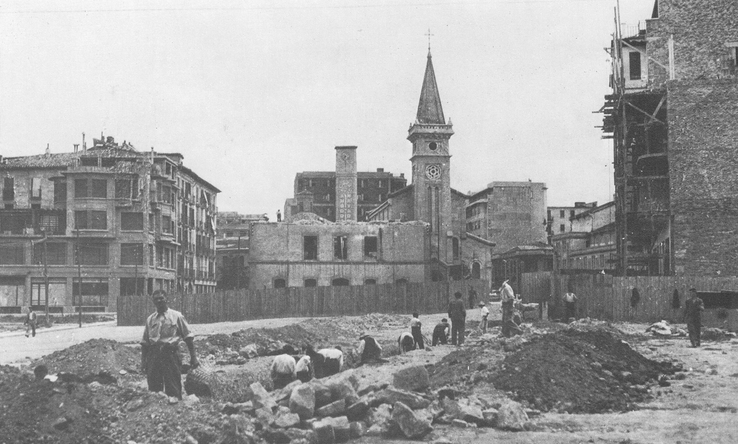 Así, se construyeron, entre abril de 1898 y julio de 1905, dos cuarteles de infantería, uno de ellos orientado a la calle General Chinchilla, el Marqués del Duero y el otro a la calle Yanguas y Miranda, el General Moriones, de los cuales podemos ver en el encabezamiento de esta entrada una foto de 1898 del inicio de las obras de construcción y sendas fotopostales de Eusebio Rubio, de los años 1904 y 1905-10, respectivamente. Los cuarteles costaron poco más de millón y medio de pesetas, con un ahorro de 600.000 pts respecto al presupuesto inicial. Antes, en 1889 y años siguientes, se habían derribado los baluartes de San Antón y de la Victoria y el revellín de Santa Teresa y levantando el lienzo de la muralla que cerraría la ciudadela, hoy fachada del recinto a la avenida del Ejército. En 1899 se habían explanado algunos fosos cercanos y había desaparecido el revellín de Santa Lucia. El 9 de agosto de 1905 el regimiento de Infantería de la Constitución nº 29 se trasladaba del cuartel de la Compañía al del General Moriones y, en 1912, el regimiento de Infantería de América nº 14 del cuartel de la Merced, (que vemos en la foto vertical de Julio Cia de 1933 que aparece junto a este párrafo) hacía lo propio con del General Marques del Duero. Setenta años más tarde se produciría un nuevo traslado. En diciembre de 1968 se trasladaría el regimiento de cazadores de montaña América 66 desde estos cuarteles en el centro de Pamplona a los nuevos cuarteles de Aizoain, haciendo entrega las autoridades militares de los terrenos liberados a la ciudad. Además en 1916 se empezó a construir un edificio independiente para habitaciones de jefes y oficiales, enfrente de la fachada principal del cuartel Marques del Duero, en la calle General Chinchilla, que se entregaría casi tres años más tarde, en enero de 1919 y que conoceríamos, a partir de los 70 como Comandancia o Gobierno Militar.En 1921 la guarnición militar de Pamplona contaba con 2.175 hombres, de los cuales 1.100 pertenecían al arma de Infantería, 600 a Caballería, 400 a artillería, 40 a Intendencia y 35 a Sanidad. Esta dotación se mantuvo hasta 1925 que descendió a 1.875 hombres y aun más a 1.475 efectivos en 1927. Posteriormente, en 1930, se construiría, en un solar situado entre la Ciudadela y la calle Yanguas y Miranda, en terrenos del antiguo hipódromo militar, el cuartel nuevo de caballería, llamado Diego de León y en la manzana inmediata a los viejos cuarteles de caballería, el Cuartel de Intendencia. Al nuevo edificio del cuartel Diego de León (que vemos en una foto de Eusebio Mina de 1966) se trasladaría el antiguo regimiento de cazadores de caballería de Almansa nº 13, desde el viejo cuartel de finales del siglo XVIII (1787) de la calle Estella y plaza del Vinculo (o cuartel de San Nicolás, que vemos en la foto tomada desde los buzones del edificio de Correos) que se derribaría en 1934, al igual que la Comandancia de Ingenieros construida en 1882 y situada cerca de la basílica de San Ignacio que se derruiría en 1936 (de dichos derribos podemos ver junto al párrafo anterior sendas fotografías, la segunda de J. Cía). Posteriormente estuvo en el citado cuartel Diego de León una unidad de Ingenieros Zapadores (por ello durante varios años se le llamó Cuartel de Ingenieros) y más tarde pasaron por él varias unidades de infantería para acabar albergando finalmente un regimiento de Artillería que se trasladó en 1968 a los cuarteles de Aizoain.